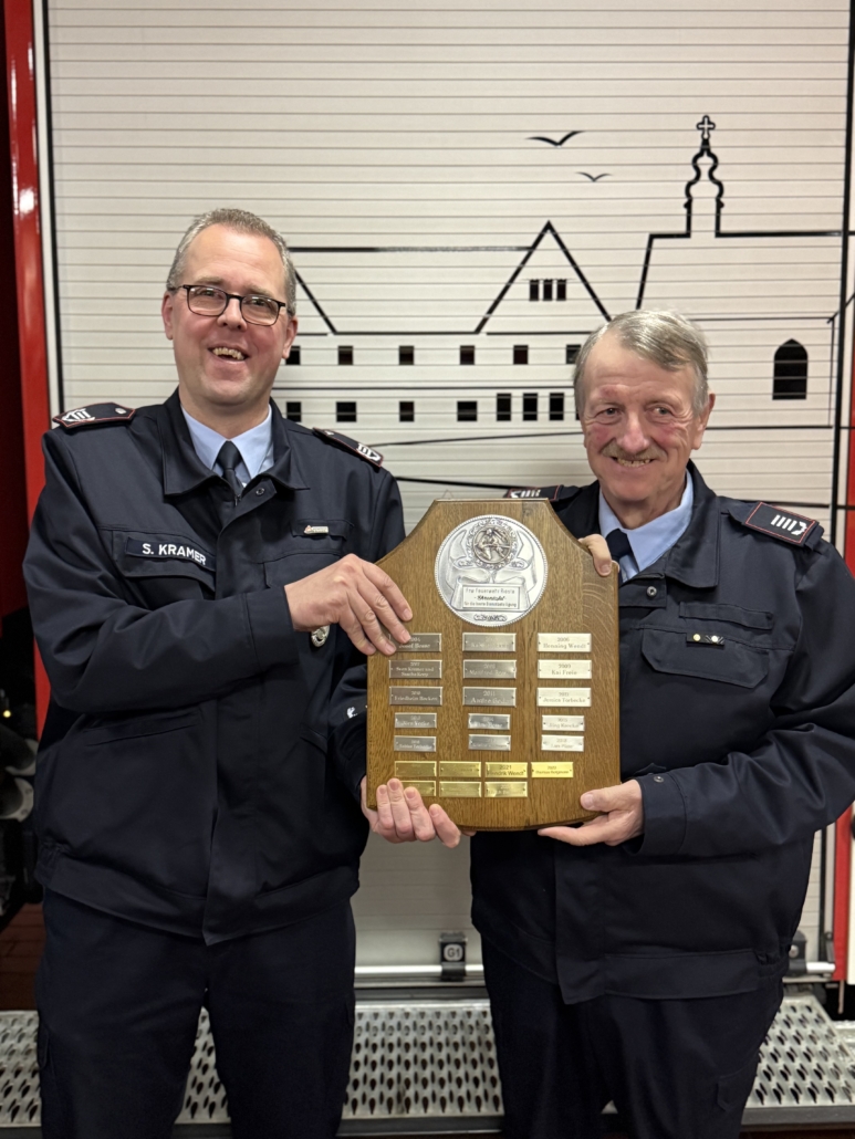Bei den Ehrungen und Beförderungen wurde Hauptbrandmeister Ulrich Bellmann für seinen außergewöhnlichen Einsatz als Feuerwehrmann des Jahres geehrt. Egal ob Tag oder Nacht, ob Dienstabend oder Jugendfeuewehr, auf den Kameraden Bellmann ist zu jeder Zeit verlass. Die Ehrung ist die Krönung einer langen aktiven Karriere im Dienste der Freiwilligen Feuewehr, bevor Bellmann im Herbst in die Altersabteilung wechseln wird.