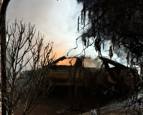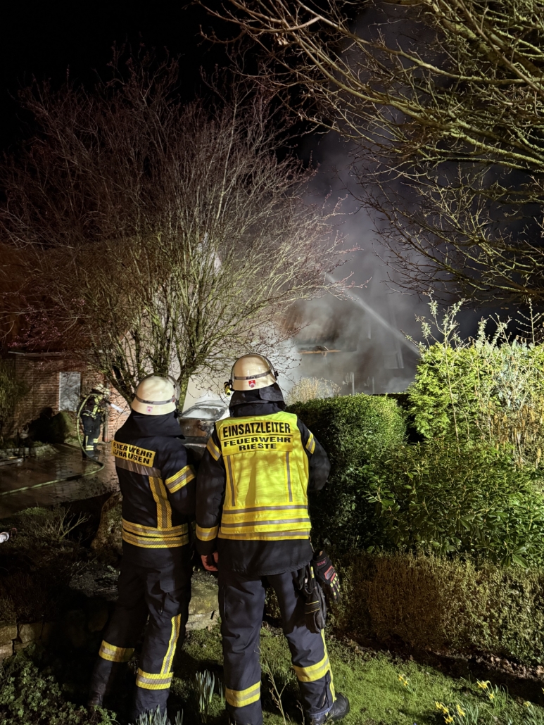 Die Feuerwehr Rieste wurde heute Nacht um 03:22 Uhr zu einem Fahrzeugbrand in die Wohnsiedlung „Auf dem Fiening“ alarmiert.