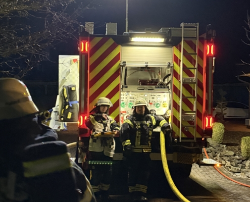 Durch einen weiteren Trupp wurde die Garage von der Rückseite betreten, kontrolliert und belüftet. Zwar kam es zu einer starken Verrauchung in der Garage, die auch als entsprechender Schaden angesehen werden muss, eine Brandausbreitung ins Innere konnte jedoch verhindert werden.