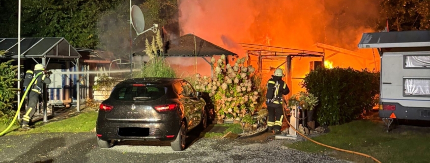 Wir konnten bereits auf Sicht anfahren. Vor Ort konnte durch das schnelle Eingreifen der TLF Besatzung ein Übergreifen auf die anliegenden Wohnwagen verhindert werden. Durch die rasante Brandausbreitung konnte der in Flammen stehende Wohnwagen jedoch nicht mehr gerettet werden. Während des Einsatzverlaufes konnten mehrere Gasflaschen evakuiert und mit Erfolg gekühlt werden. Im Zuge der Nachlöscharbeiten wurde ein E-Bike ausfindig gemacht, welches mit Flammenaufschlag behaftet wurde. Im Zuge dessen wurde ein Batteriemanager durch Einsatzleiter Sven Kramer zur Einsatzstelle hinzugezogen. Der beschädigte Akku konnte seitens der Fachfirma entsorgt werden. Zum Zeitpunkt des Brandes waren keine Personen im Mobilheim. Es gab keine Verletzten.